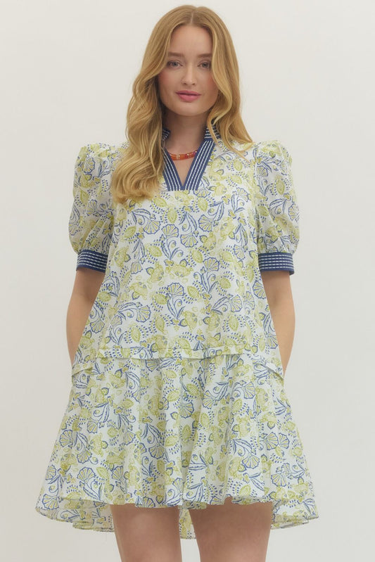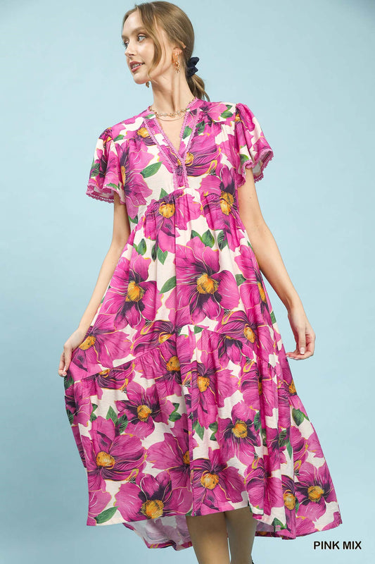 The Lemon Grove Ruffle Sleeve Floral Dress