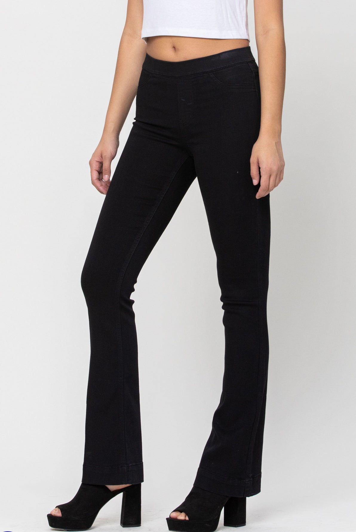 Meet your new go-to jeans — The Cello Classic 33” Pull-On Flares are all about comfort, style, and the perfect fit. Designed with a flattering high-rise pull-on waistband (no buttons, no zippers!), these jeans smooth and shape while keeping you comfy all day long. The black wash gives a sleek, polished look that’s easy to dress up or down, and the 33” inseam offers just the right length for booties, wedges, or heels.